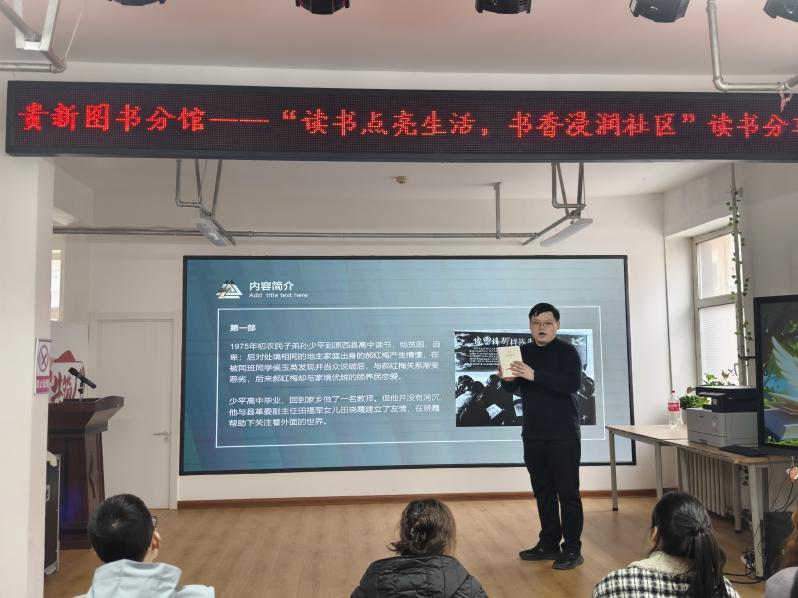 4月16日,欧美性爱 选派学生参加贵新社区“读书点亮生活,书香浸润社区”读书分享会,与校内外各欧美性爱 同学共话阅读、分享感悟。沙一凡同学带来了《乡土中国》的分享,带领大家重新认识了我们脚下这片土地的文化根脉;张博文同学则分享了《平凡的世界》,讲述了普通人在时代历史进程中所走过的艰难曲折的道路,让在场的每一个人都深受触动。